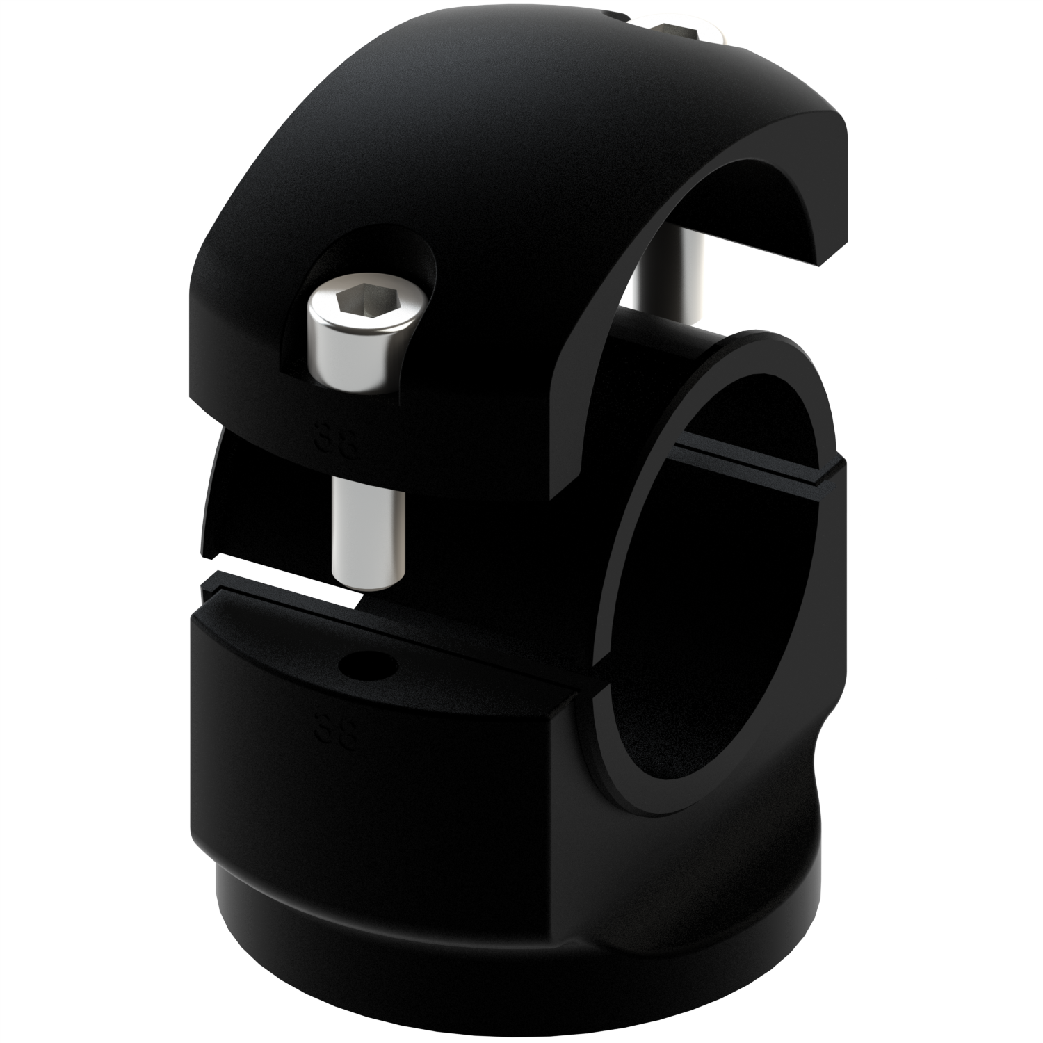 Frame clamp for mounting on round tubes with a 27mm diameter. 32mm frame clamp with 2,5mm reducing sleeves. For holding tube bases, swivel units or other components with RKN50.