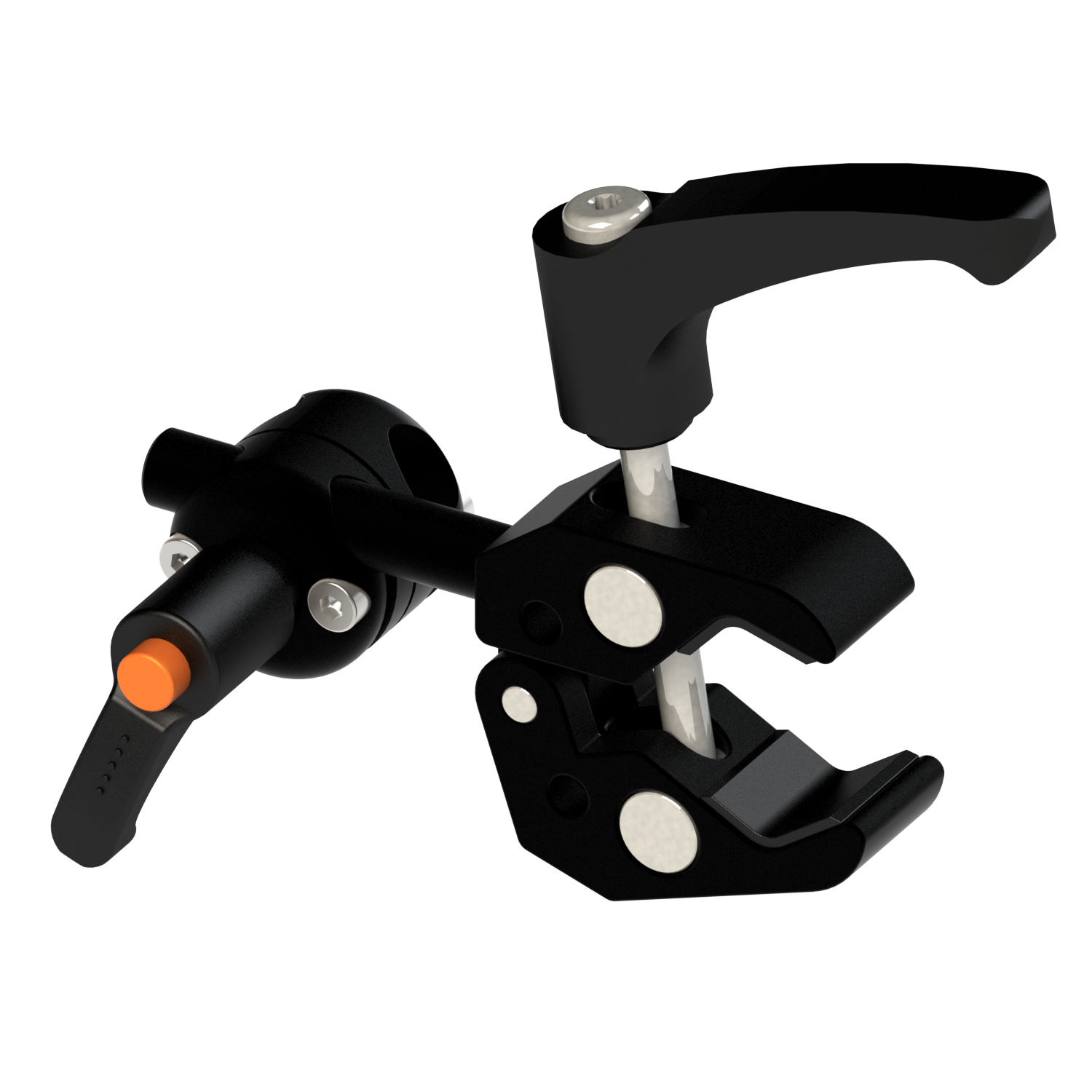Mini clamp for clamping dimensions from 10 to 35mm, which has a 10mm rod socket that is connected to a 10mm standard joint. Base for mounting systems with 10mm rods.