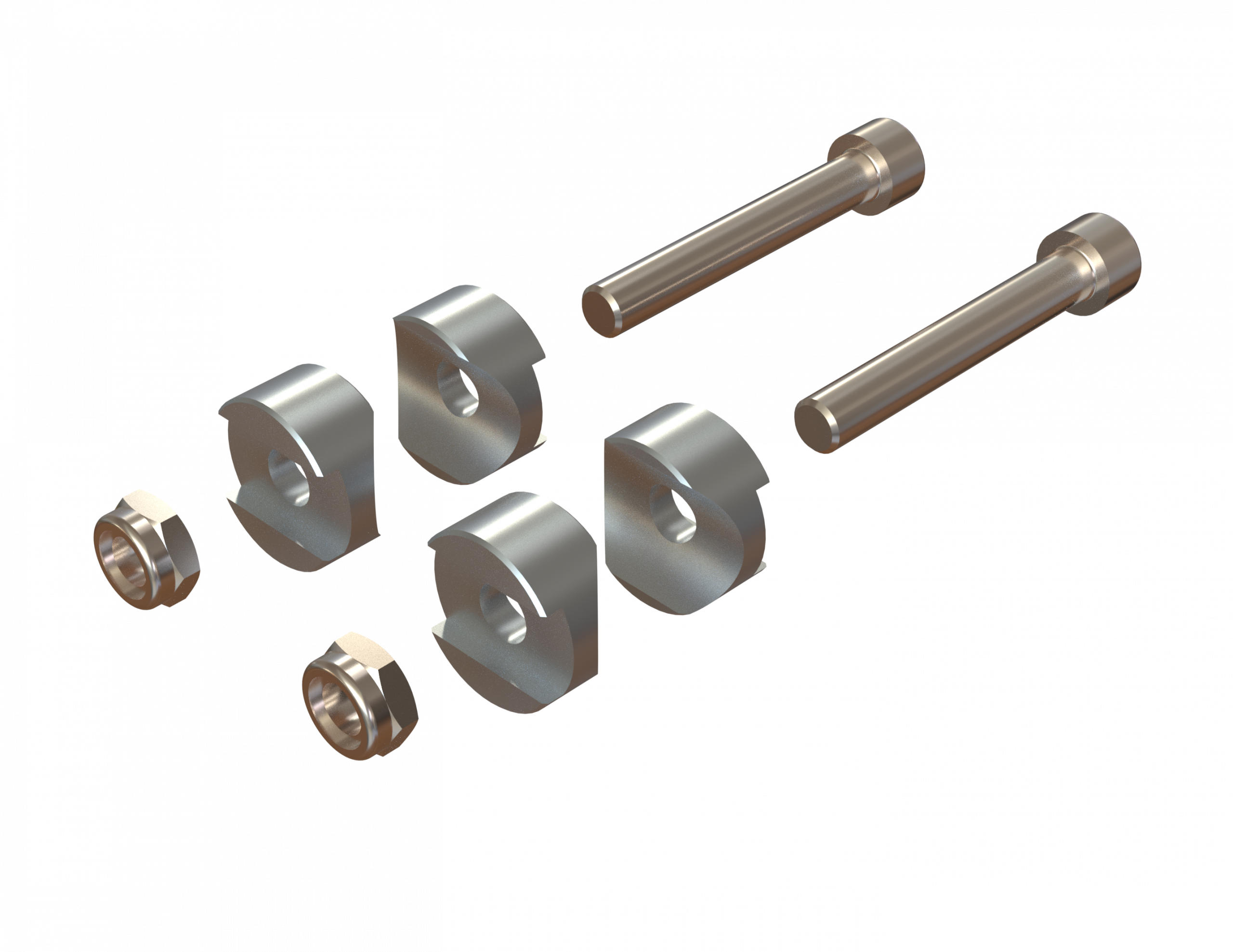 4 pieces of saddle washers to mount flat based frame clams on to 25mm tubes. 2x M8X50, 2x8,4 washers und 2 M8 nuts.