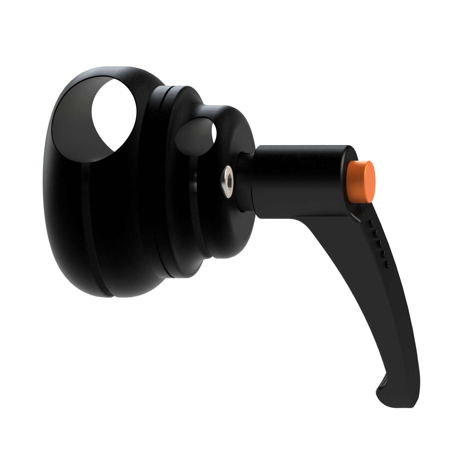 For connecting a 22mm tube to a 10mm rod. Both halves of the joint have additional screws to clamp the tubes separately. Clamping levers and screws are included.