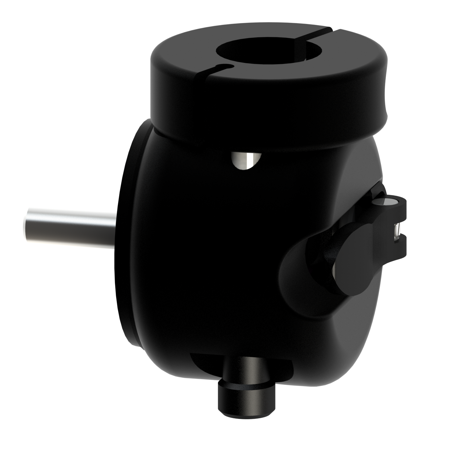 Swivel unit with release pin. For mounting on an RKN50 M8 joint half or on an RKN50 frame clamp. To hold a 22mm vertical tube.
