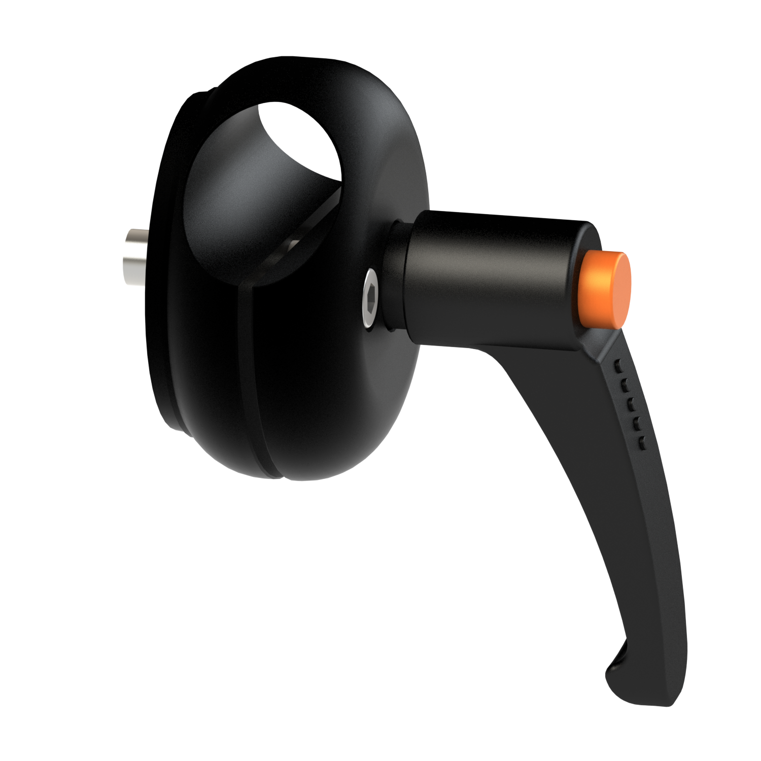 22mm Tube base including clamping lever and spring package. The tube socket has additional screws to clamp the tube separately. For mounting on a frame clamp or other components with RKN50 M8.