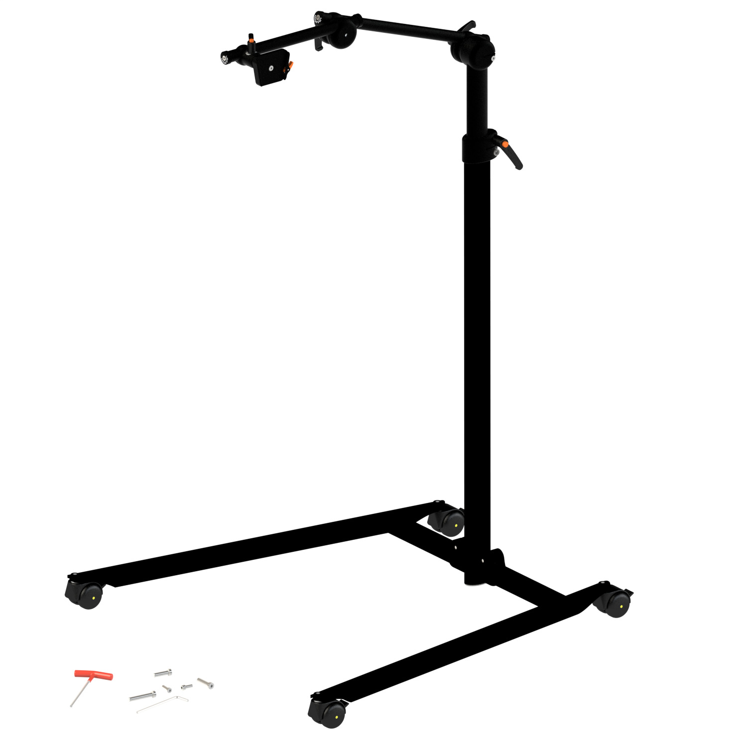 Bodenständer mit V-förmigen Fahrgestell. Höhenverstellbar - Rohrset 400/300 - UDA 1B - Beide Rohre mit Abrutschsicherung versehen. Alle Komponenten sind mit Klemmhebel ausgestattet (Schrauben zusätzlich beigelegt). Maximales Adaptionsgewicht 10Kg. Geringe Unterfahrhöhe zur optimalen Positionierung unter Betten, Rollstühlen oder Sitzmöbeln.