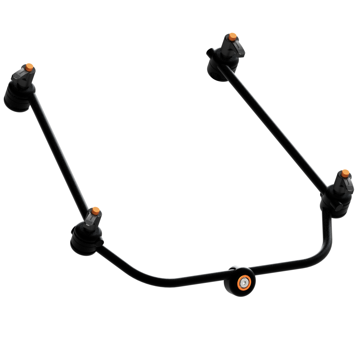 Tasterhalterung mit max. Stabset (350/100 ALU)/250+250 SPRING Stabrohrklemme Headswitch II, 4 Stück Standardgelenk 10/10 - Kabelbinder lösbar - Alle Gelenke sind mit Klemmhebel ausgestattet (Schrauben zusätzlich beigelegt). Inklusive Rahmenklemme, diese muss ausgewählt werden.