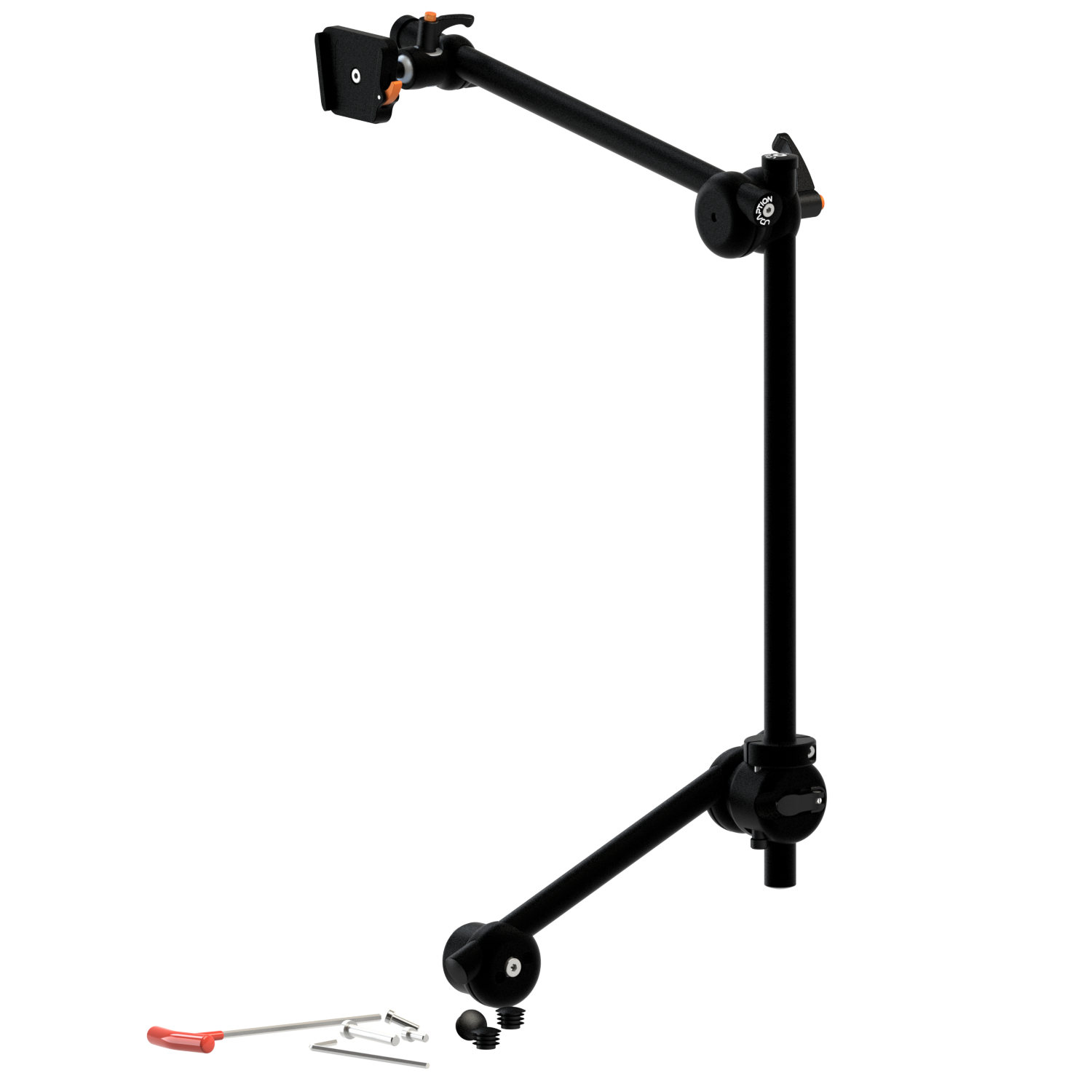 Rollstuhlhalterung mit max. Rohrset 300/500/400 - Angel-Lock Rohraufnahme 22mm - Schwenkgelenk LL - Standard Rohrgelenk 22 - UDA 1B - Max. Adaptionsgewicht 4Kg - Alle Komponenten außer Rohraufnahme mit Klemmhebel ausgestattet (Schrauben zusätzlich beigelegt). Ohne Rahmenklemme, diese muss separat bestellt werden.