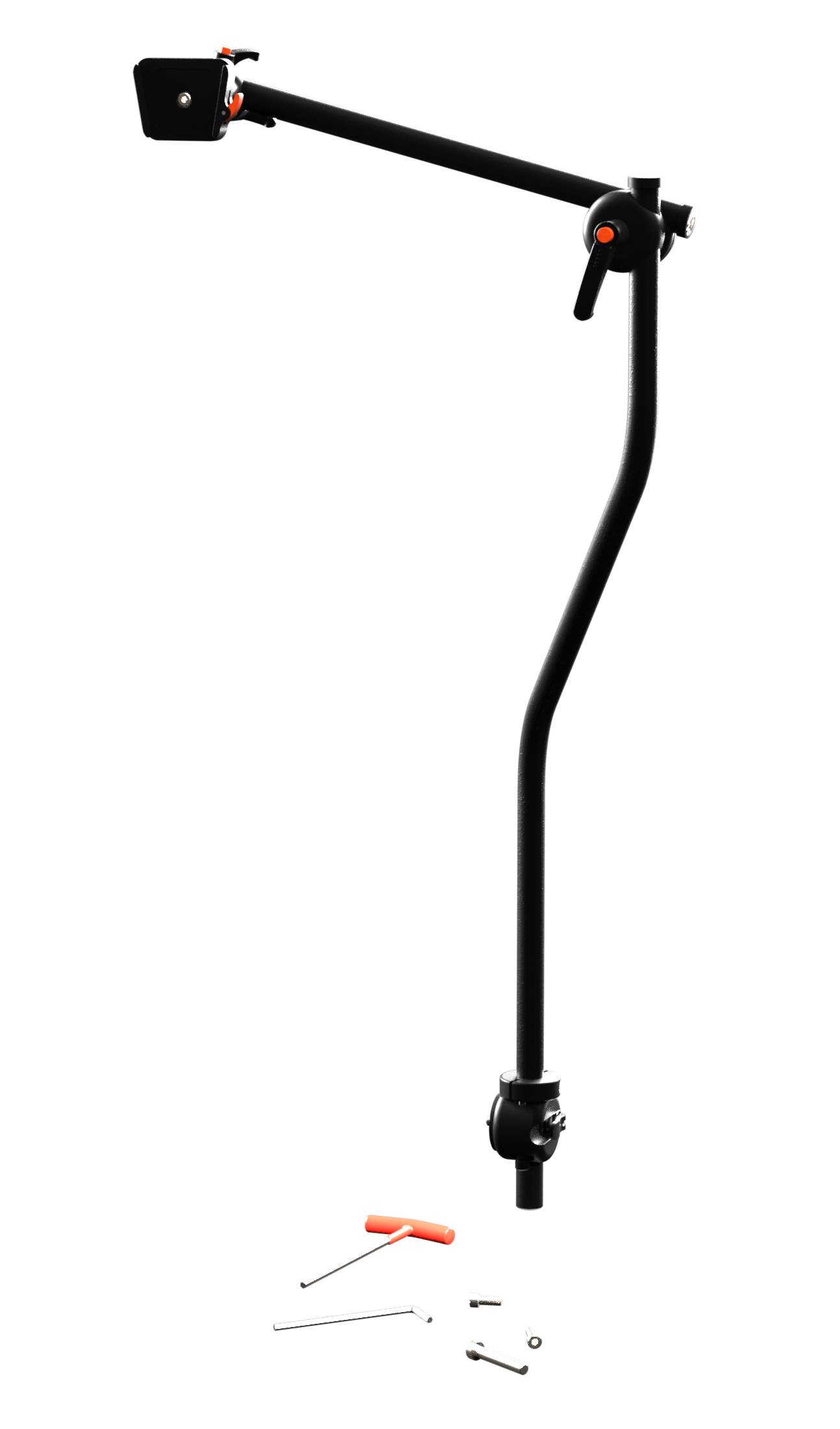 Rollstuhlhalterung mit max. Rohrset 860-300/400 - Schwenklager L - Standard Rohrgelenk 22 - UDA 1B - Max. Adaptionsgewicht 4Kg - Alle Komponenten sind mit Klemmhebel ausgestattet (Schrauben zusätzlich beigelegt). Ohne Rahmenklemme, diese muss separat bestellt werden.