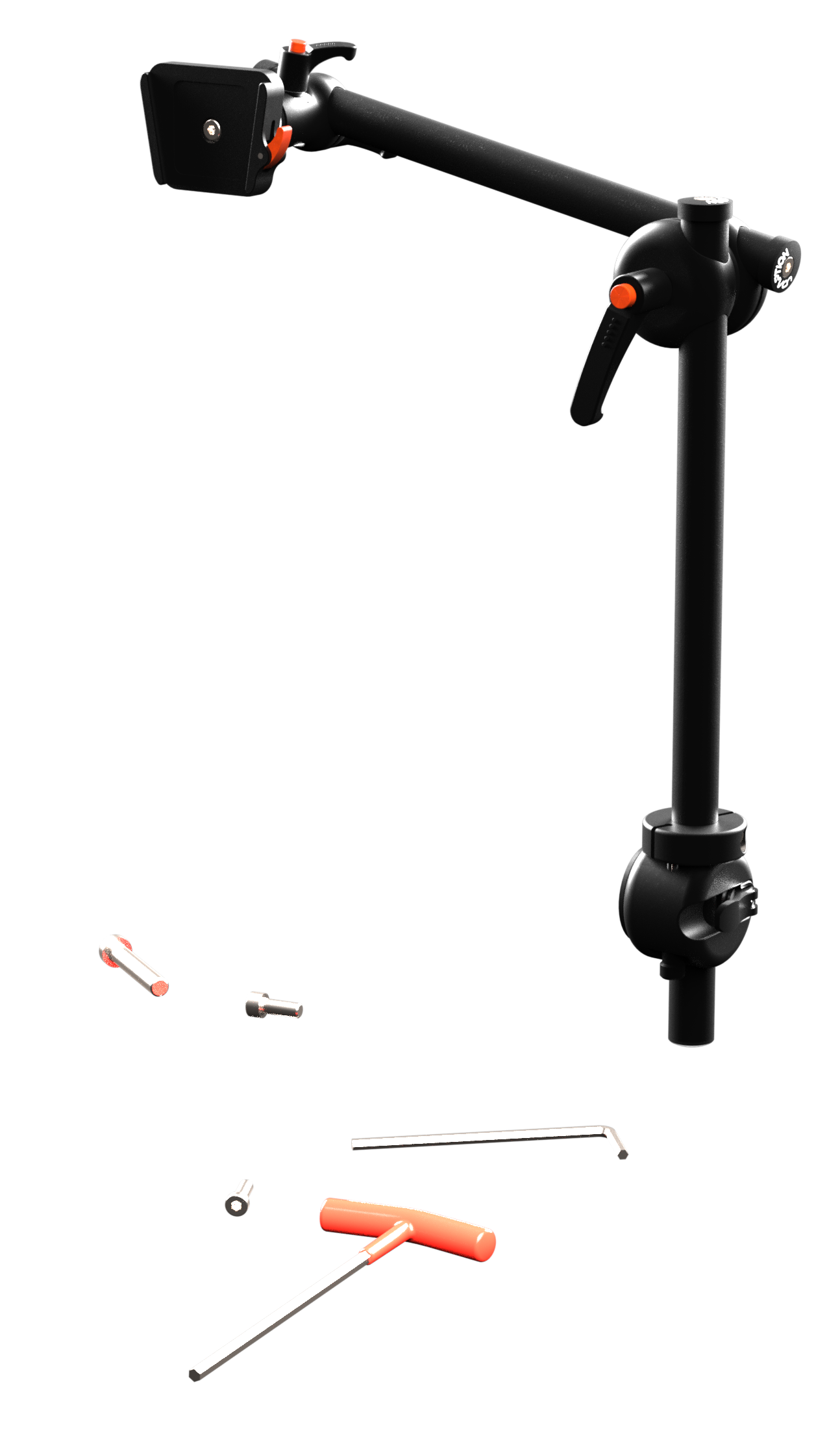 Rollstuhlhalterung mit max. Rohrset 500/500 (geliefert 500/400)- Schwenklager L - Standard Rohrgelenk 22 - UDA 1B - Max. Adaptionsgewicht 4Kg - Alle Komponenten sind mit Klemmhebel ausgestattet (Schrauben zusätzlich beigelegt). Ohne Rahmenklemme, diese muss separat bestellt werden.