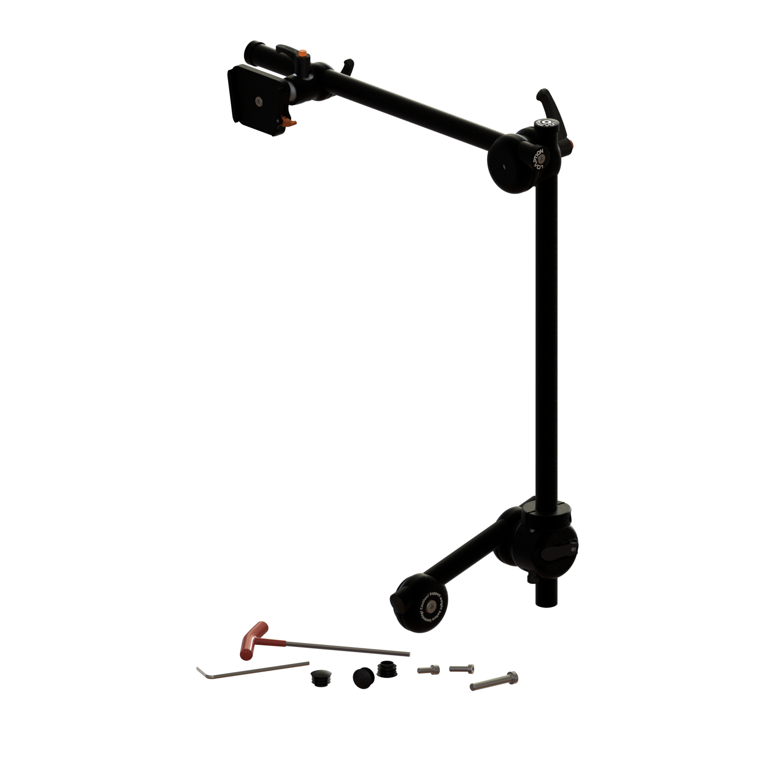 Rollstuhlhalterung mit max. Rohrset 200/500/400 - Rohraufnahme 22mm - Schwenkgelenk LL - Standard Rohrgelenk 22 - UDA 1B - Max. Adaptionsgewicht 3Kg - Alle Komponenten außer Rohraufnahme mit Klemmhebel ausgestattet (Schrauben zusätzlich beigelegt). Ohne Rahmenklemme, diese muss separat bestellt werden.