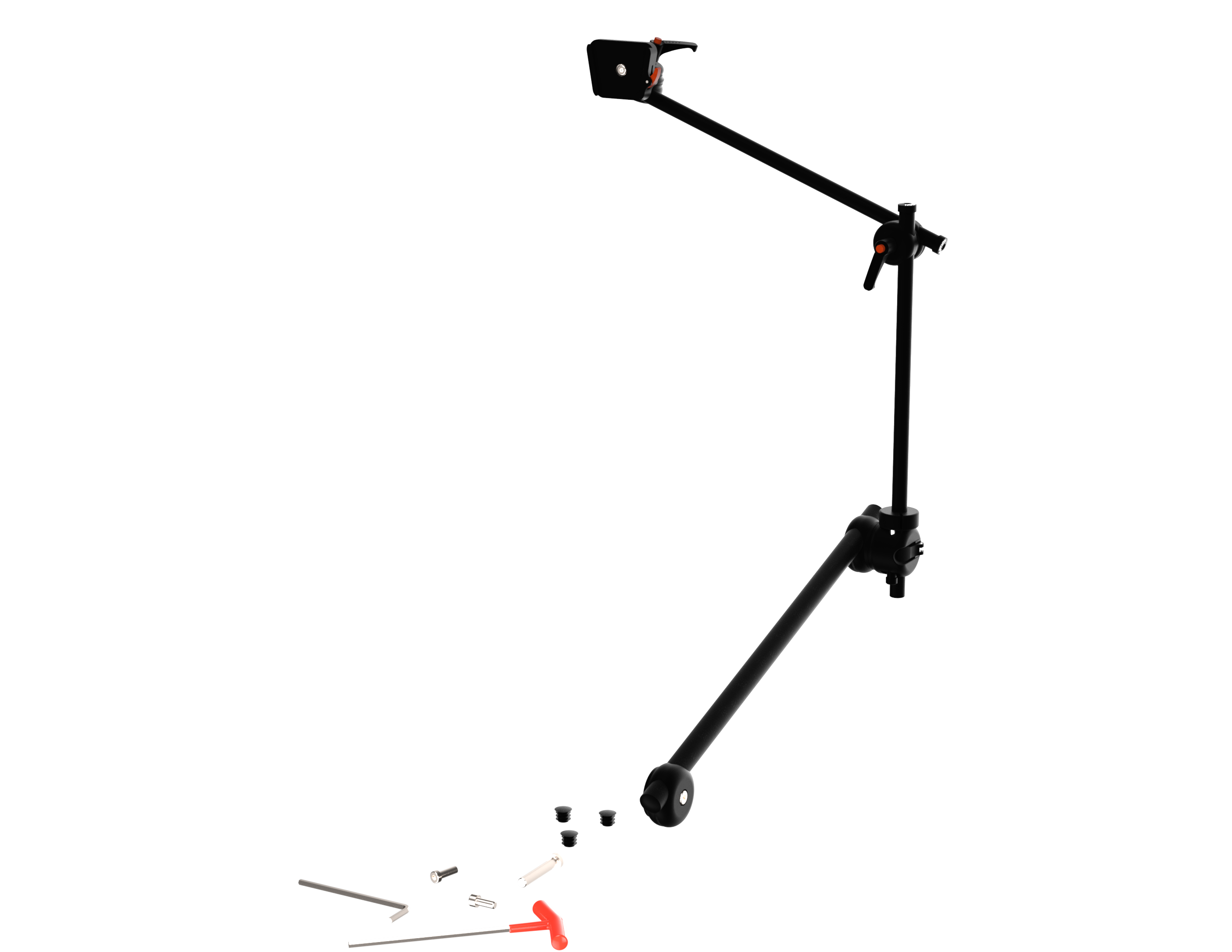 Rollstuhlhalterung mit max. Rohrset 500/400/400 - Rohraufnahme 22 - Schwenkgelenk LM - Standard Rohrgelenk 16 - Standard Rohrgelenk 16/10 - UDA PIN - Max. Adaptionsgewicht 1,8Kg - Alle Komponenten sind mit Klemmhebel ausgestattet (Schrauben zusätzlich beigelegt). Ohne Rahmenklemme, diese muss separat bestellt werden.