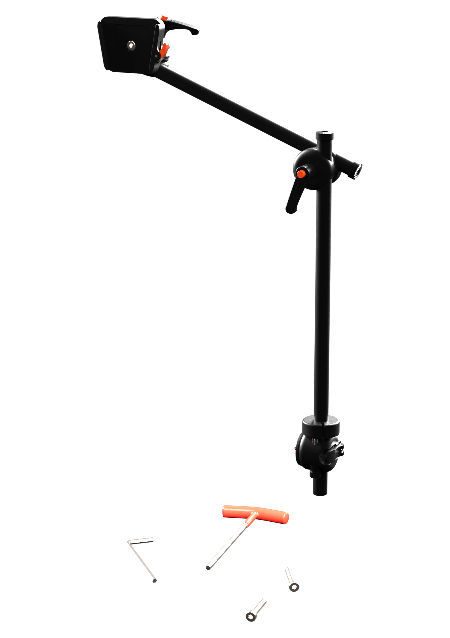 Rollstuhlhalterung mit max. Rohrset 400/300 - Schwenklager M - Standard Rohrgelenk 16 - Standard Rohrgelenk 16/10 - UDA PIN - Max. Adaptionsgewicht 1,2Kg - Alle Komponenten sind mit Klemmhebel ausgestattet (Schrauben zusätzlich beigelegt). Ohne Rahmenklemme, diese muss separat bestellt werden.