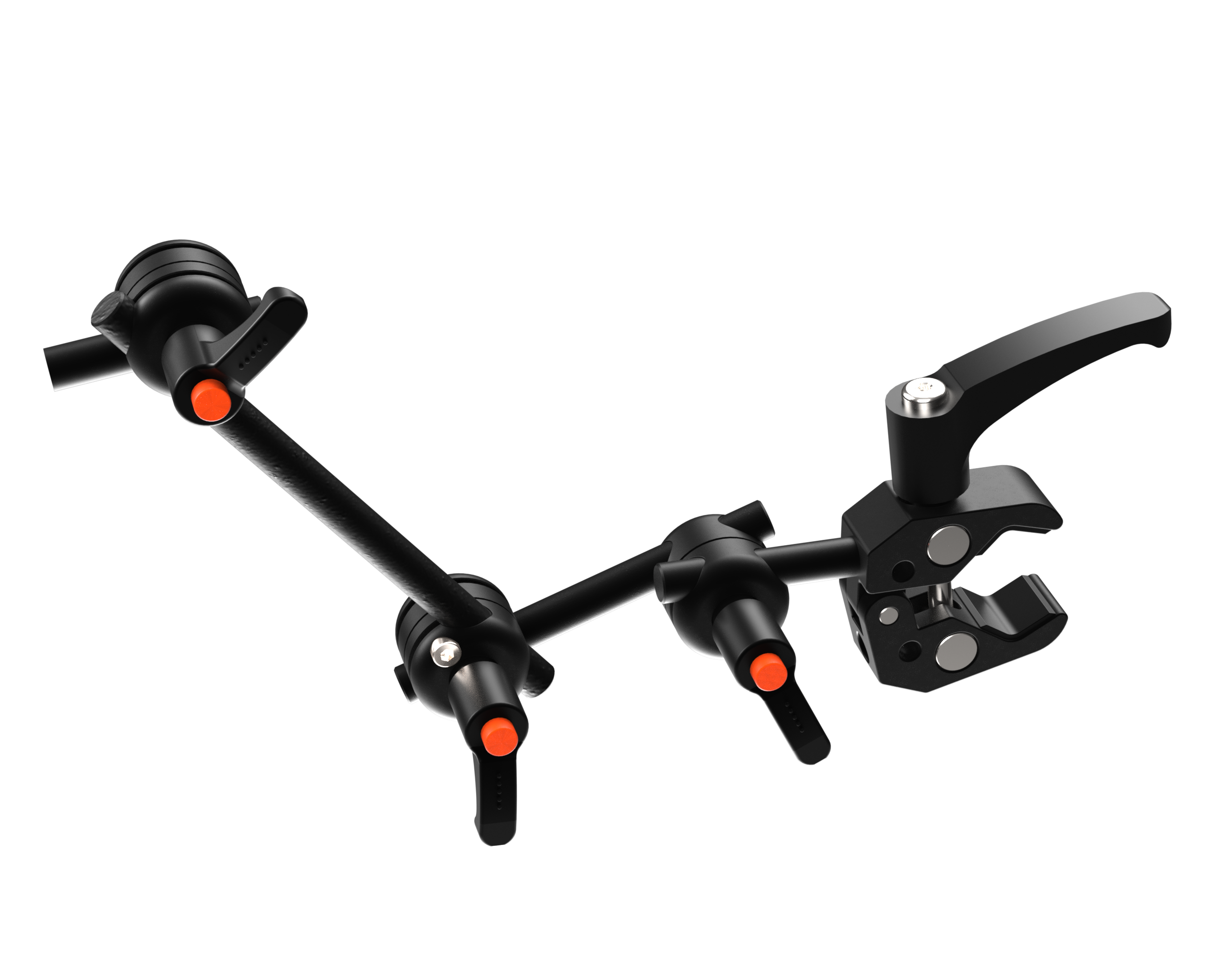 Mini Tischklemme mit einem 10mm Standard- und einem 10mm Federstab, die über ein Rohrgelenk verstellbar mit der Miniklemme verbunden sind. 10mm PIN Aufnahme mit 10er Stab M4 Innengewinde bestückt. Zur Montage von Tasteraufnahmen mit M4 Befestigungsschrauben. Max. Last = 0,6 Kg
