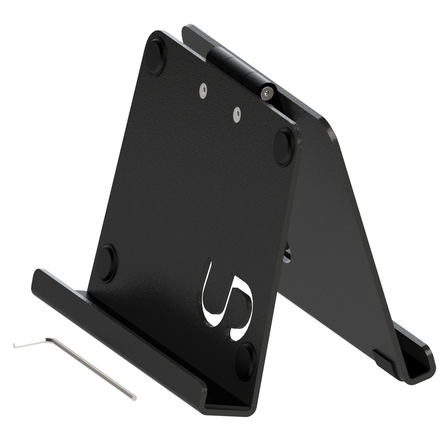 Tablet-Ständer für Hilfsmittel. Kann Tablets bis 10“ ohne Schutzhülle (bis 11mm) und Tablets bis 10“ mit Schutzhülle (bis 25mm) aufnehmen. Beliebiger Neigungswinkel über Scharnier einstellbar.