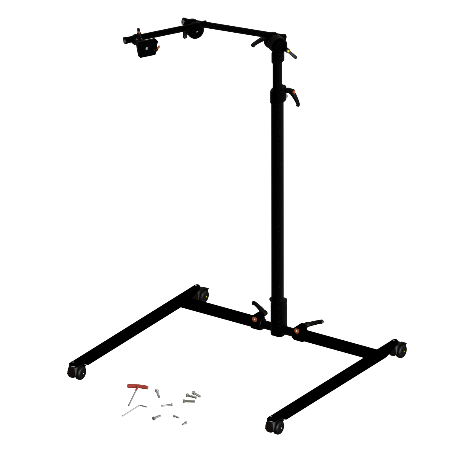 Bodenständer mit U-förmigen Fahrgestell. Höhen- und Breitenverstellung möglich. Rohrset 400/300 - UDA 1B - Beide Rohre mit Abrutschsicherung versehen. Alle Komponenten sind mit Klemmhebel ausgestattet (Schrauben zusätzlich beigelegt). Maximales Adaptionsgewicht 7,5Kg. Geringe Unterfahrhöhe und hohe Fahrgestellbreite zur optimalen Positionierung unter Betten, zwischen Sitzmöbeln oder Rollstühlen.